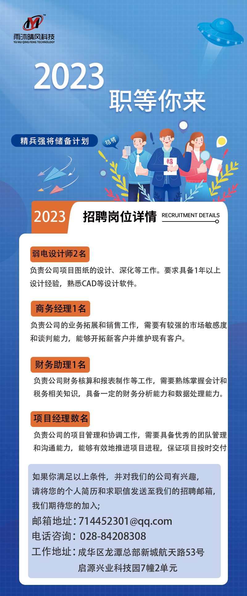 成都雨沐晴風科技2023“精兵強將儲備計劃”