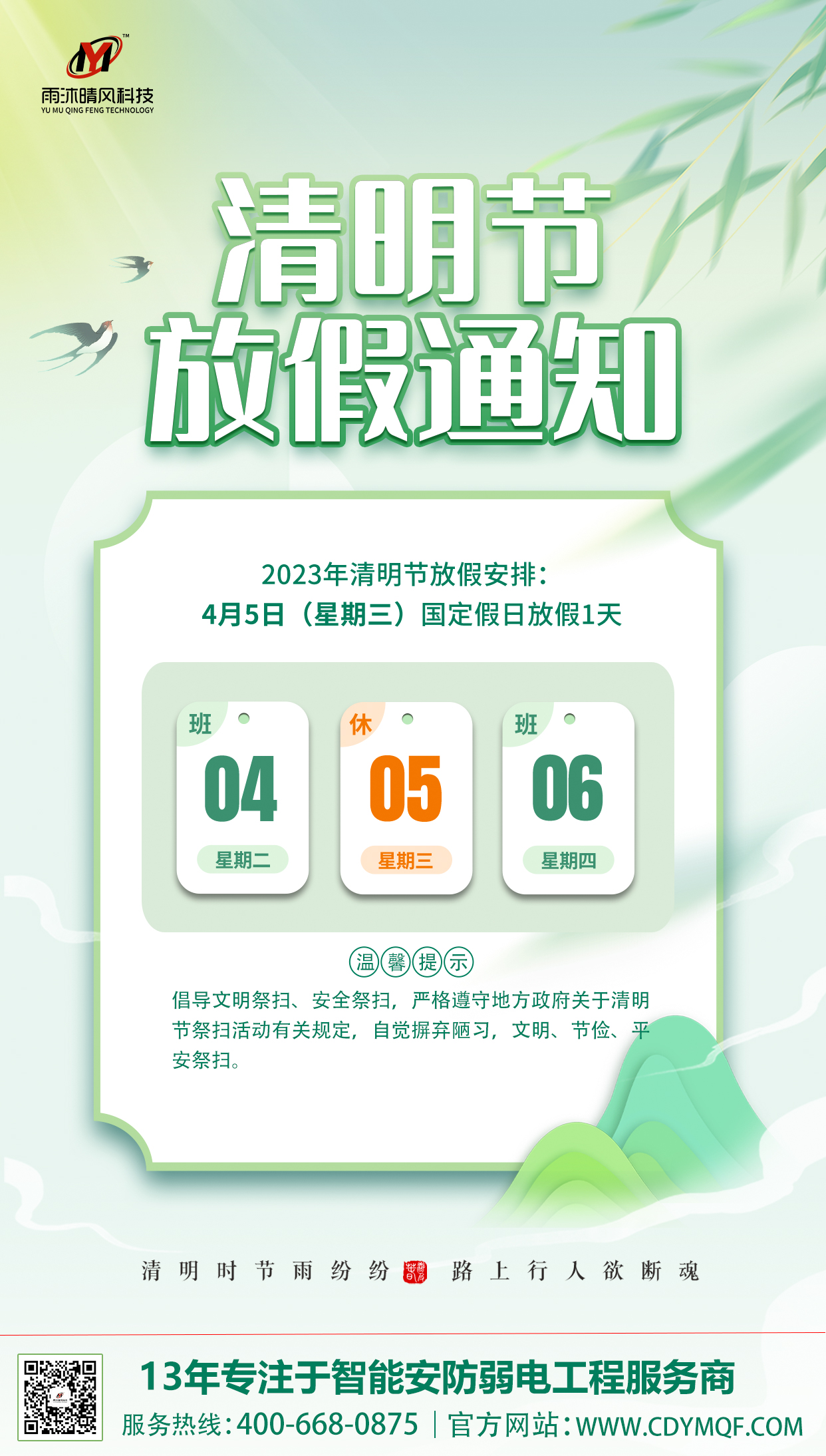 成都弱電工程公司|2023年清明節放假通知