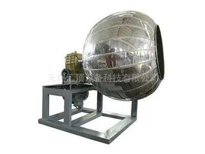 為使芯片盡快在其表面均勻涂上包衣結(jié)晶,并達到拋光目的,須先對鍋內(nèi)芯片分次噴糖漿,再通過鍋體順時針旋轉(zhuǎn),使糖衣片在鍋內(nèi)翻滾、磨擦、研磨,使糖衣均勻。同時向鍋內(nèi)通入熱風,迅速除去藥片糖衣表層水份,獲得包裹均勻、光滑的糖衣片。本機是糖衣工藝的常用設(shè)備,以穩(wěn)定的鍋體線速度旋轉(zhuǎn),使藥片在鍋內(nèi)形成拋物曲線,達到糖衣層厚薄均勻,色澤光亮,不發(fā)生麻點的工藝要求。