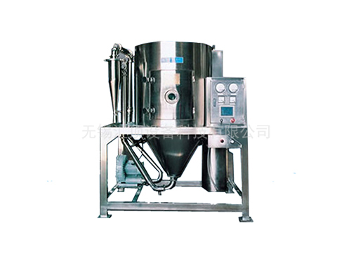 空氣經(jīng)過過濾和加熱,進入干燥器頂部熱風分配器,熱空氣呈螺旋狀均勻地進入干燥室。料液經(jīng)干燥室頂部的高速離心霧化器,(旋轉)離心噴霧成細微的霧狀液珠,與熱空氣并流接觸,在短的時間內(nèi)干燥為成品并下落。成品連續(xù)地由干燥塔底部和旋風分離器中輸出,廢氣經(jīng)除塵器由引風機排空。