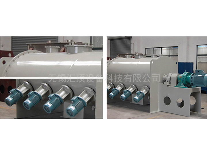 犁刀組軸:犁刀根據(jù)容積大小安排犁刀數(shù)據(jù),安裝在主軸上,在筒體內(nèi)作圓周湍動流混合物料。