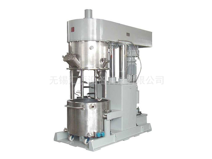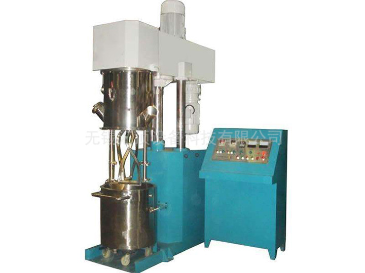 由攪拌桶、攪拌蓋、攪拌動(dòng)力頭(含兩組低速攪拌槳、兩組高速分散器及一組刮壁槳)、溫控裝置、升降裝置、鎖桶裝置及控制系統(tǒng)等組成。